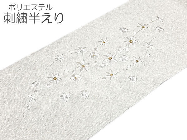 - 半衿 振袖 刺繍半衿 3 ポリエステル半衿 白半襟 花刺繍 ゴールド 刺繍 白色 半襟 はんえり 訪問着 小紋 成人式 結婚式 メール便送料無料