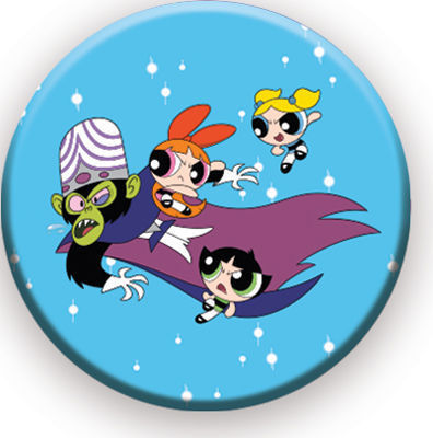 - Power Puff Girls (パワーパフガールズ) Vs Mojo 水色 缶バッジ (ピンタイプ)