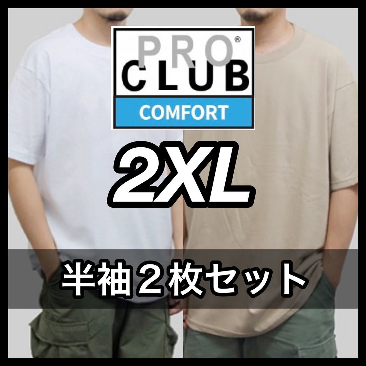 - 新品 プロクラブ 無地 半袖Tシャツ コンフォート 白ベージュ系カーキ二枚セット 2XL