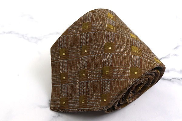 - 498円~カルバンクライン チェック柄 格子柄 スクエア イタリア製 ブランド ネクタイ メンズ カーキ 良品