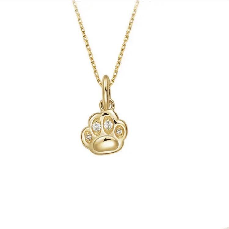 - ネコ 猫 ネックレス リング 2点セット レディース スワロフスキー ジルコニア 4月 誕生石ネコ 肉球