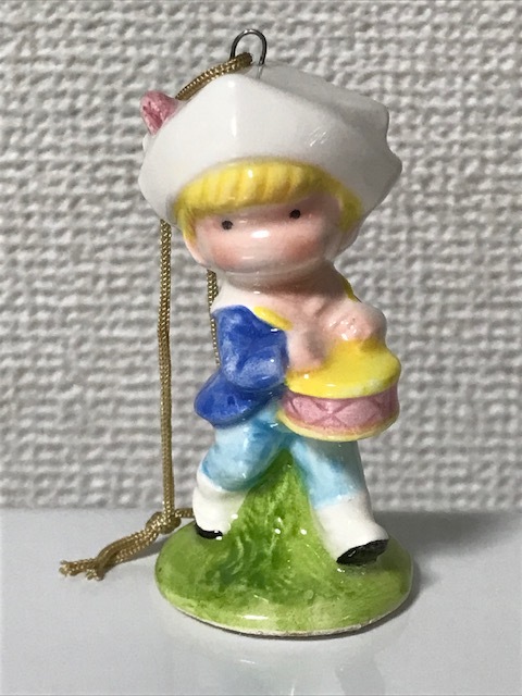 > 当時物 1975年 WOLFPIT 日本製 ジョアン・ウォルシュ・アングルンド 陶器製 小太鼓を奏でる少年 オーナメント 6.6cm 昭和レトロ 希少