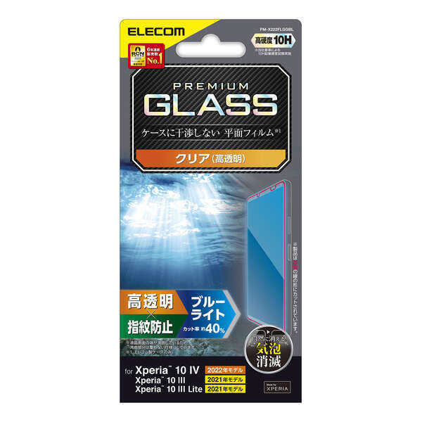 > Xperia 10 IV/III/III Lite用液晶保護ガラスフィルム ガラス特有のなめらかな指滑りを実現するブルーライトカットタイプ: PM-X222FLGGBL