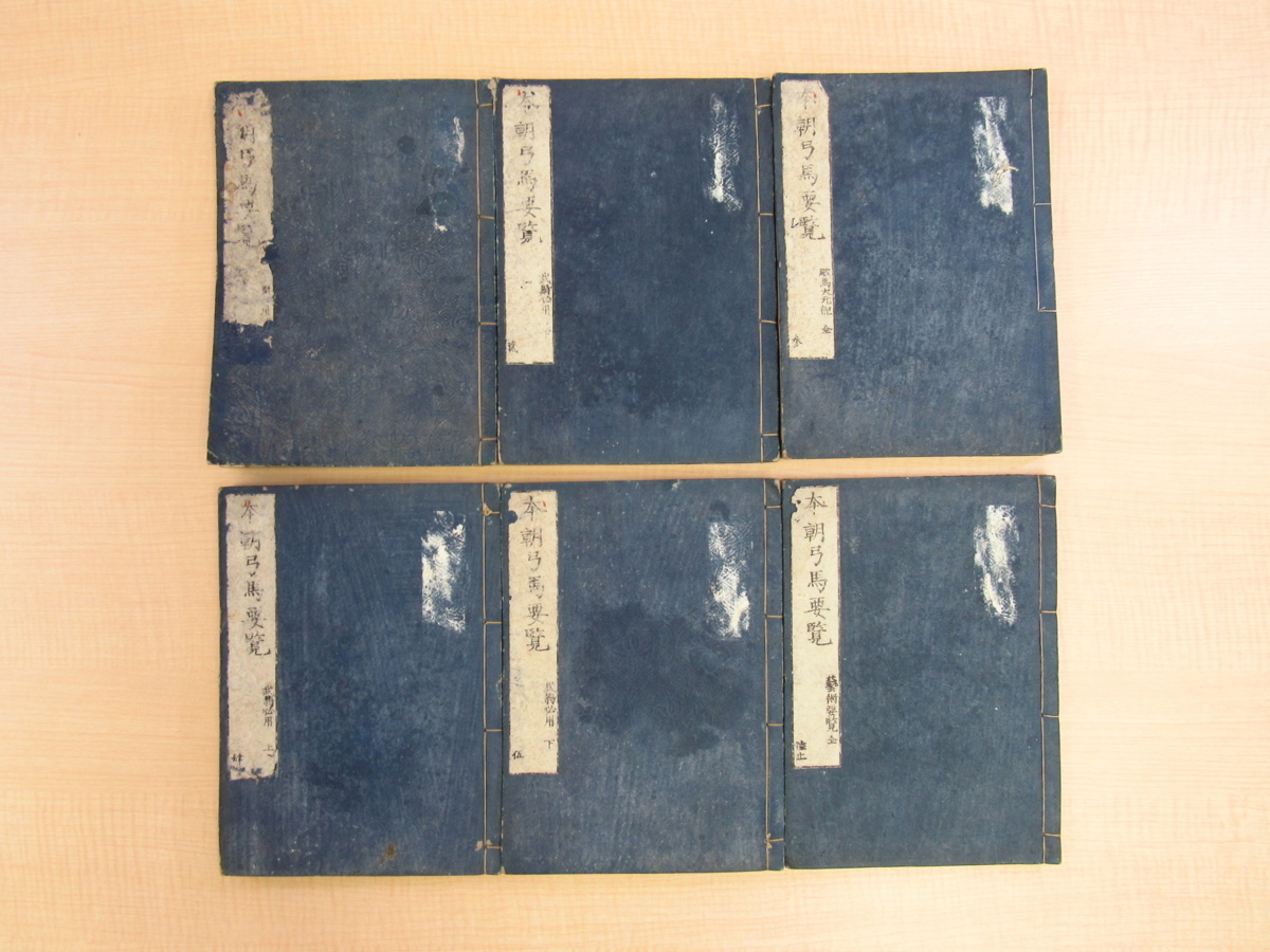 - 『本朝弓馬要覧』(全6冊揃)天保4年刊 江戸時代和本 武芸書4種「武射必用」「大坪本流馭馬大元記」「大坪本流武馬必用」「芸術要覧」