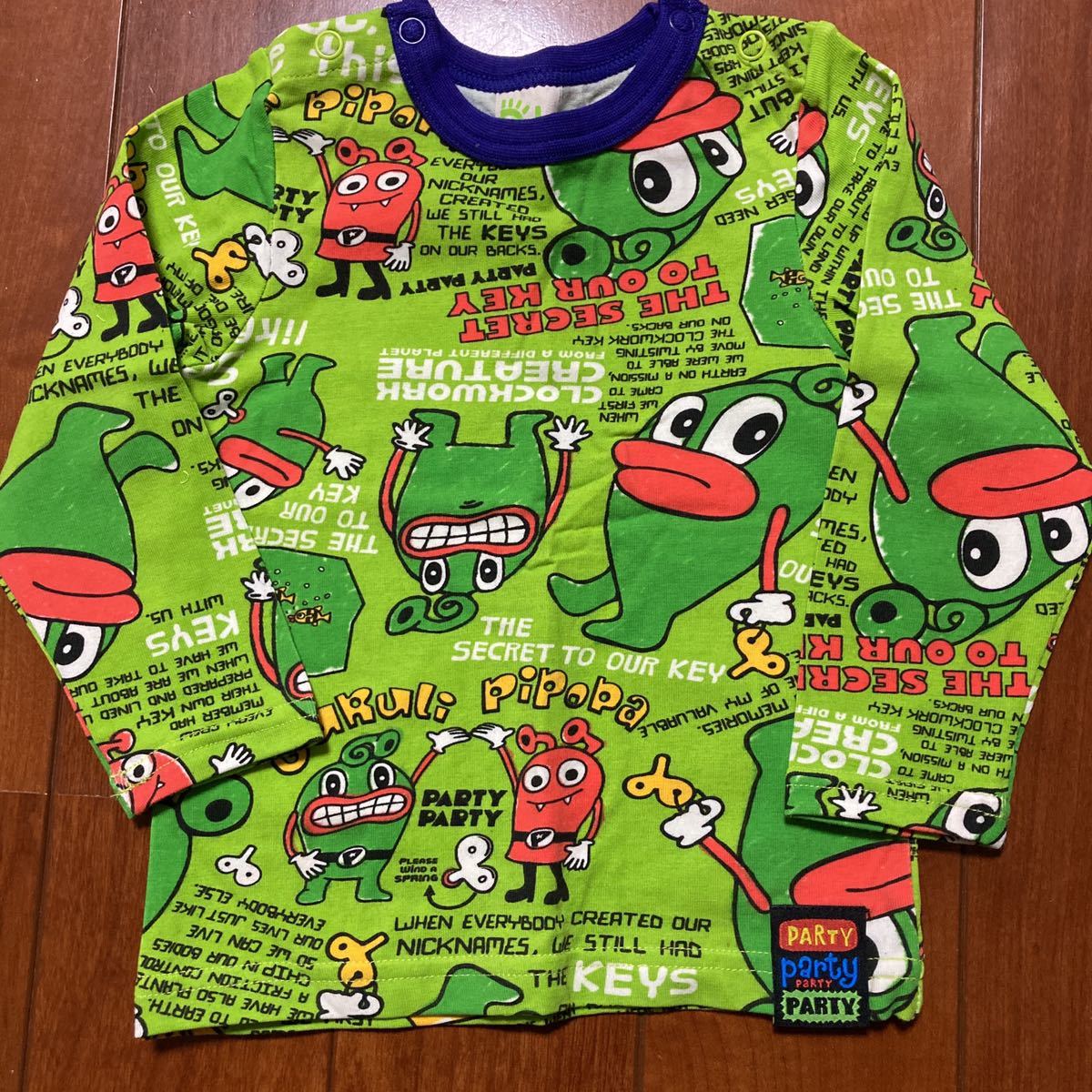 - PARTY PARTY・パーティーパーティー・ストレッチ生地・総柄・長袖Tシャツ・グリーン・90