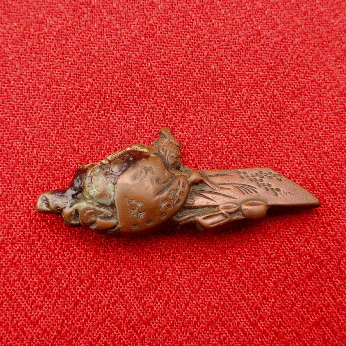 - 前金具 時代 金具 縁金 銅製 人 日本刀の部品 胴乱 煙草入れ 煙管入れ 古物 骨董 41㎜ 【3094】