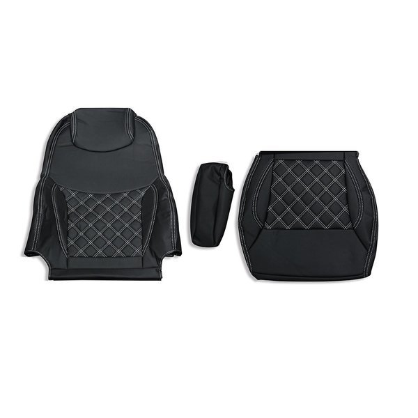 - 日野 NEW プロフィア シートカバー 艶無し 黒 運転席 ダイヤモンド ホワイト ステッチ AP-CV001R-WL