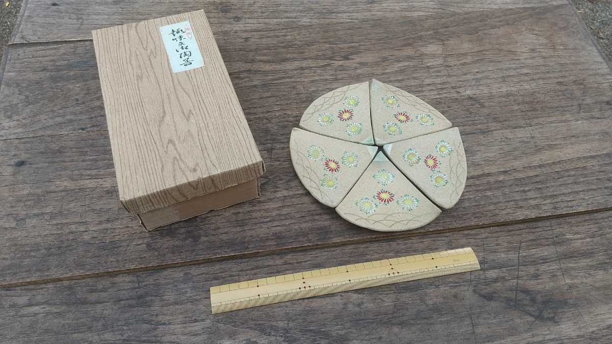 - 趣味の陶芸 足付き小皿5枚 あわせ皿 昭和後期 保管品