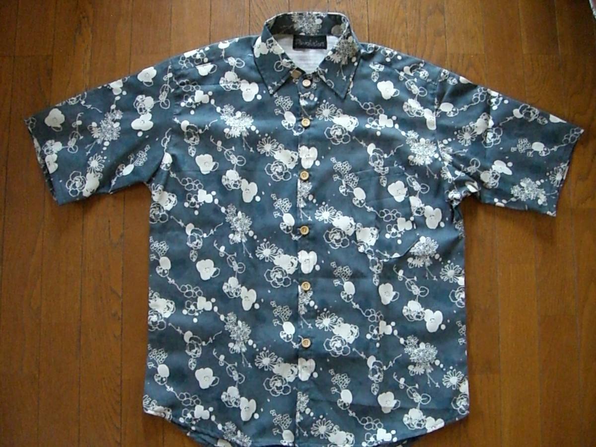 - ☆手作り☆ 和花柄半袖シャツ 薄青 XL 新品 送無料あり