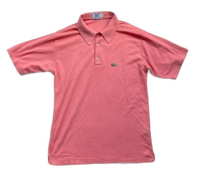 > 70's 80's 青ワニタグ 米国製 MADE IN USA ラコステ IZOD LACOSTE ポロシャツ サーモンピンク ポリ65%綿35% サイズL [ta-0439]