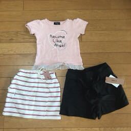 > 未使用と中古 コムサイズムCOMME CA ISM Tシャツとスカートと短パンキュロット3点セット サイズ90