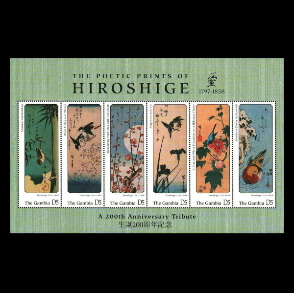 - ■ガンビア切手 日本画 / 花鳥風月 歌川広重 200周年 6種シート 05
