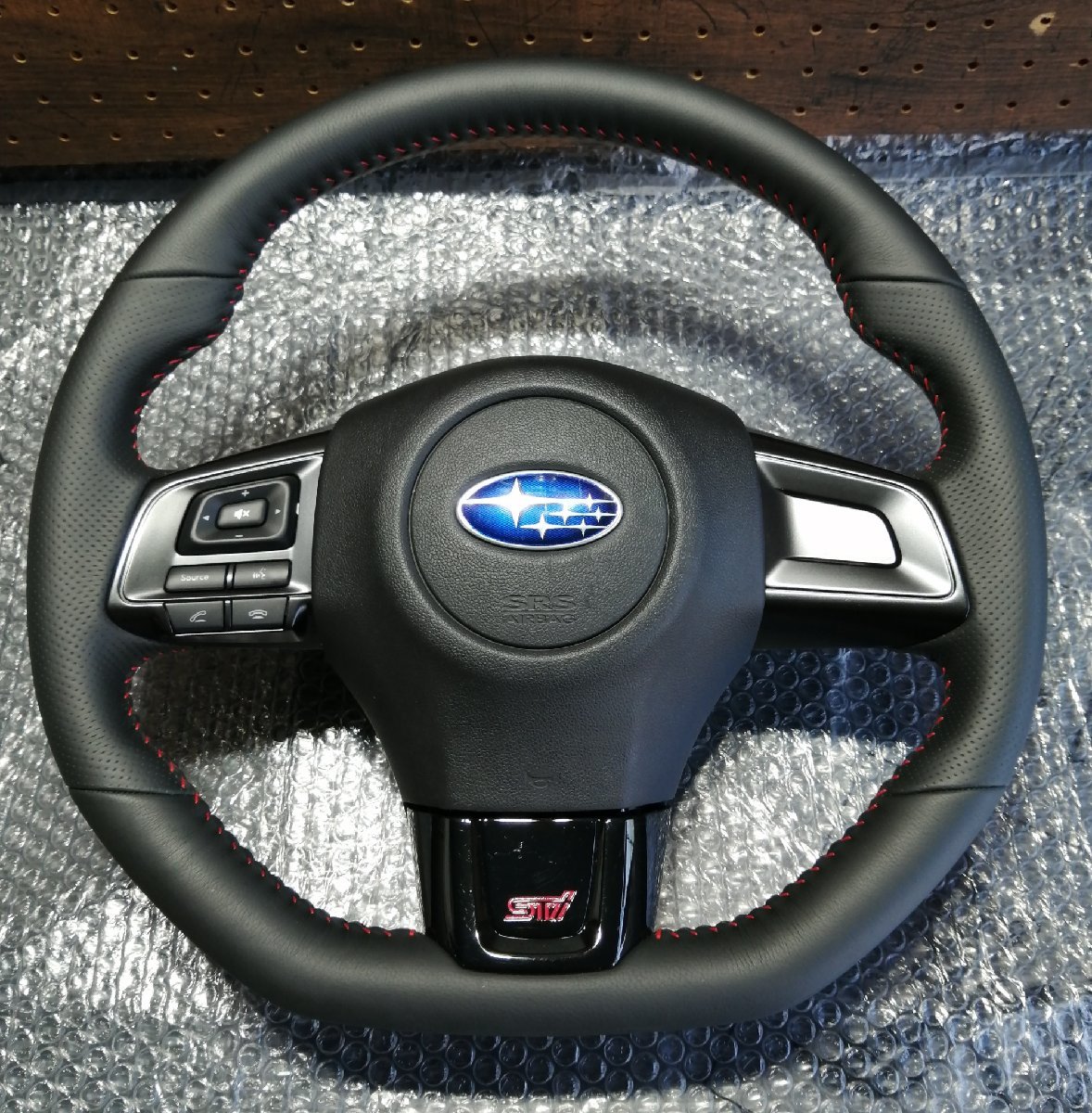- SUBARU WRX STI VAB F型 純正 本革ステアリング レッドステッチ 新車外し VAG VM4 VMG ⑤