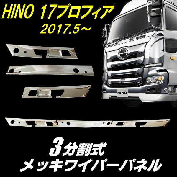 > 日野 17 プロフィア ABS 3分割 鏡面 メッキ フロント ワイパー パネル H29.4~ 大型 トラック ドレスアップ 貼り付け 簡単取付 B