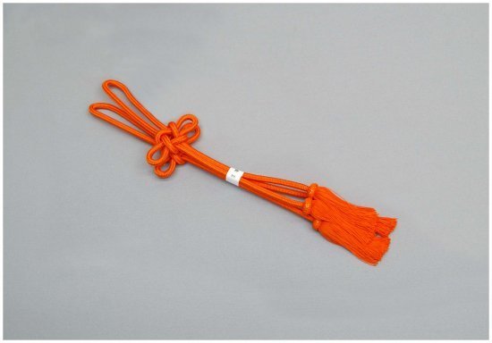 - 妙鉢用紐 正絹 朱色 取付用革紐・ヘタ付き 長さ52cm(小サイズ)