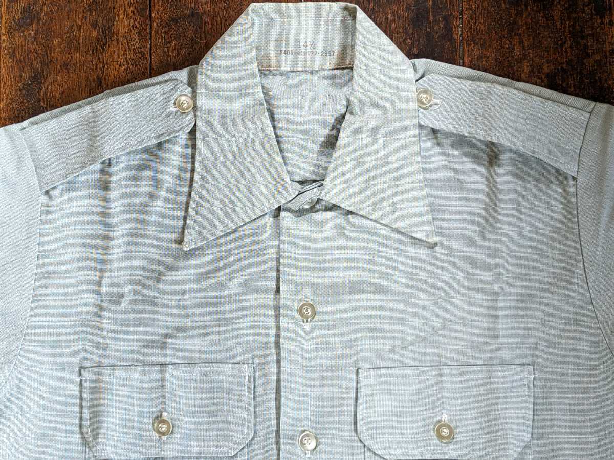 > 新品 ★ 陸 軍 US ARMY ミリタリー オフィサー シャンブレー シャツ 支給実物 ミント グリーン エポレット ビンテージ WW プリズナー 大戦