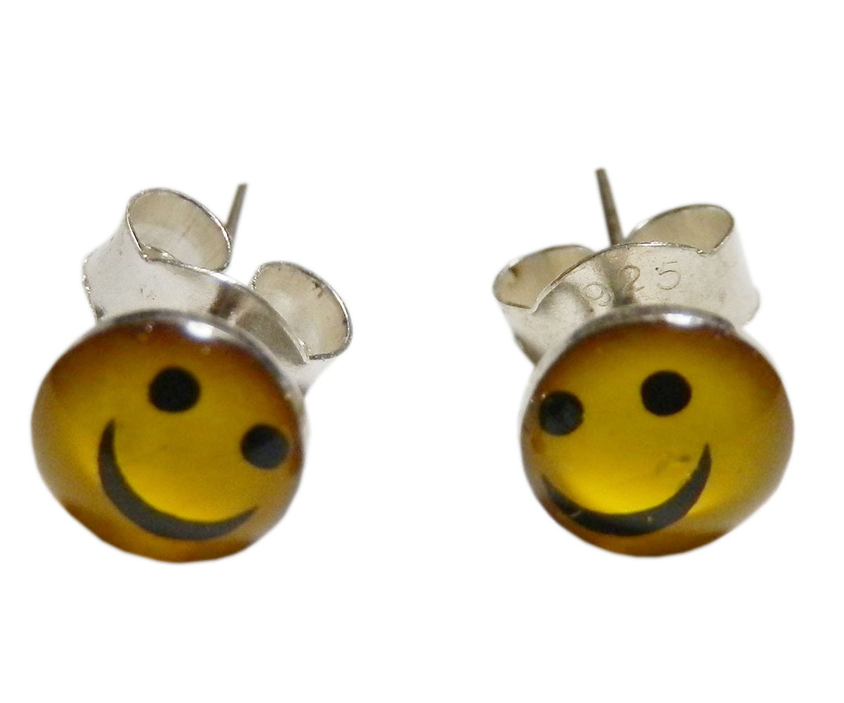 - ■☆アジアン雑貨 タイ銀職人 シルバー・キャッチ付きピアス スマイルマーク (KCP-23)