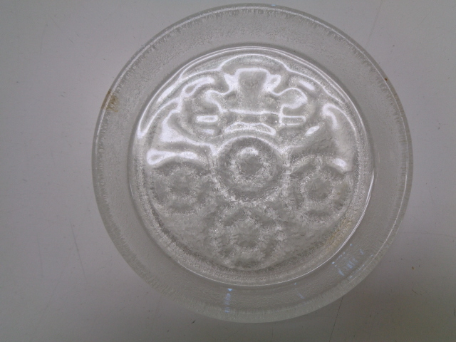 > d208-60【1円~】 昭和レトロ プレスガラス プレート 花削柄 直径15センチ×高さ2.5センチ ガラス皿