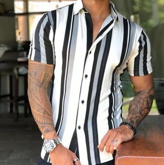- HSM284★新入荷 夏物アロハシャツ メンズ カジュアルシャツ 半袖シャツ トップス オープンカラー 開襟 ストライプ柄 M~3XL