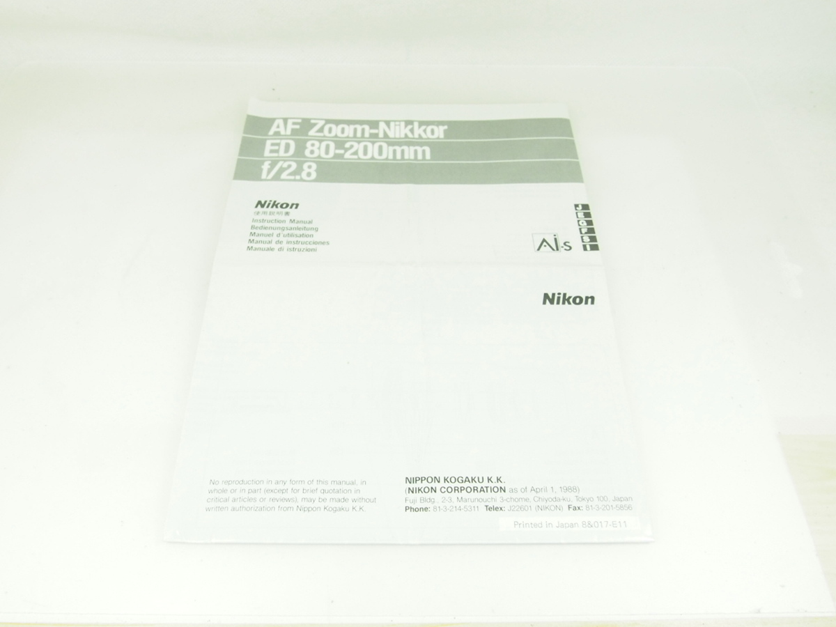- M160☆☆中古説明書★オリジナル★ニコン AF Zoom-Nikkor ED 80-200mm f/2.8