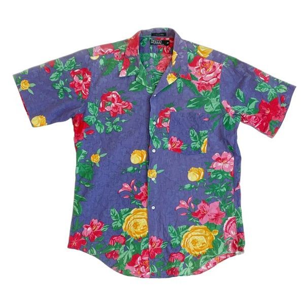 - 90's 米国製 MADE IN USA ラルフローレン Polo Ralph Lauren コットン アロハ 開襟 オープンカラー シャツ 花柄 ボーイズ20 [ta-0473]