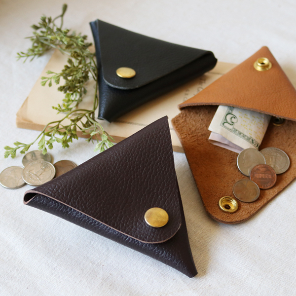 - 1000円からスタート シュリンクレザー本革で作る 一枚革 三角コインケース 両面開き 小銭入れ ミニウォレット 小物入れ S38A