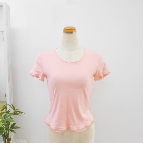 > パリエンヌ PARIENNE レディース S 半袖 Tシャツ お袖 チュール フリル ピンク 小さめ 細い方 トップス