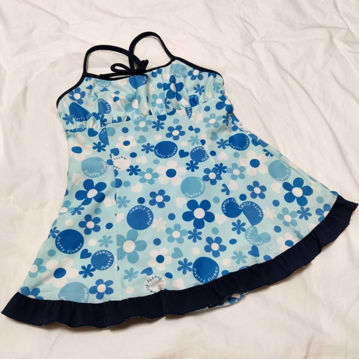 - キッズ水着 130 ワンピース水着 肩ひも調節 水色系 花柄 女の子 子供 220810