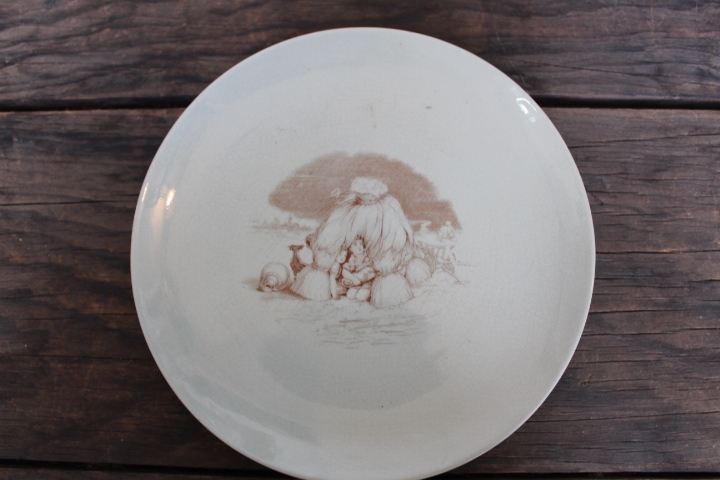 - イギリス アンティーク【Pinder Bourne】キャビネットプレート 1868-1882 皿 親の帰りを待つ村の子供
