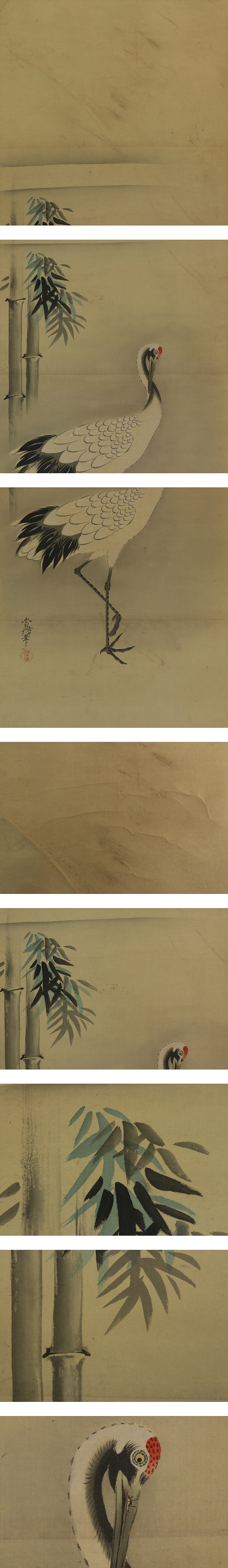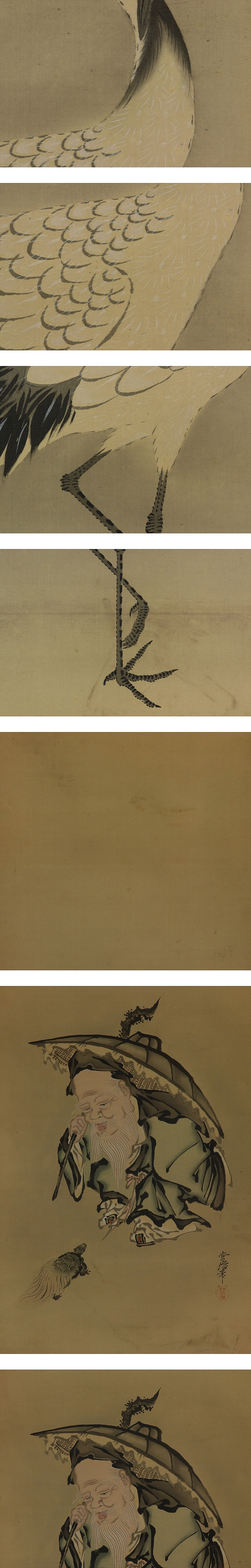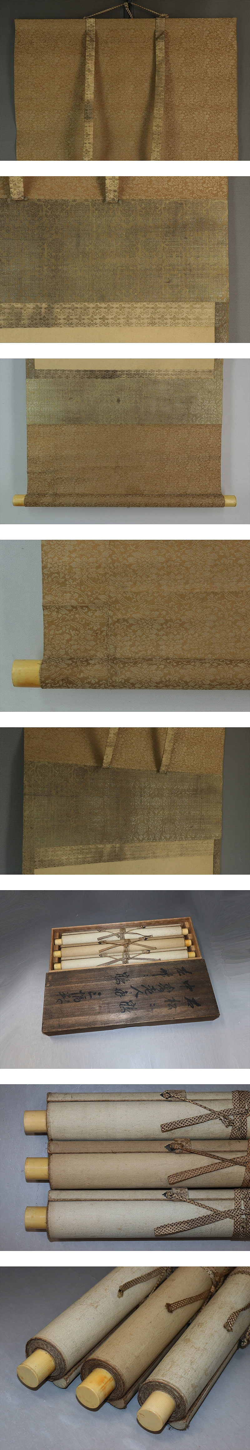 - 【真作】狩野常信【三対幅・慶祝図】◆絹本◆合箱◆掛軸 u03075