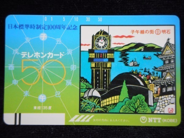 - テレカ 50度 日本標準時制定100周年記念 子午線の街 明石 NTT(KOBE) T-1040 未使用