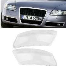 > 車ヘッドライトレンズシェード左 & 右 PC カバーアウディ A6 A6L C6 2006-2011