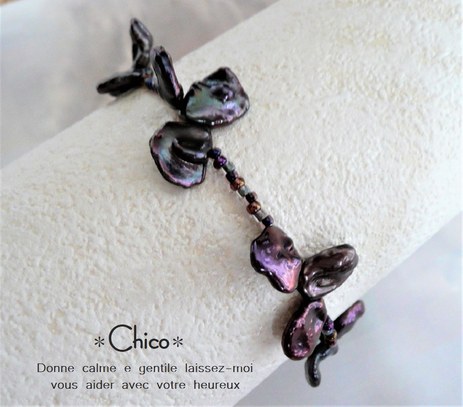 - ■20cm■ ブラック ケシ 花びら 12枚&ブラックポテト ハンドメイドブレスレッド♪ ★2点以上送料無料!★