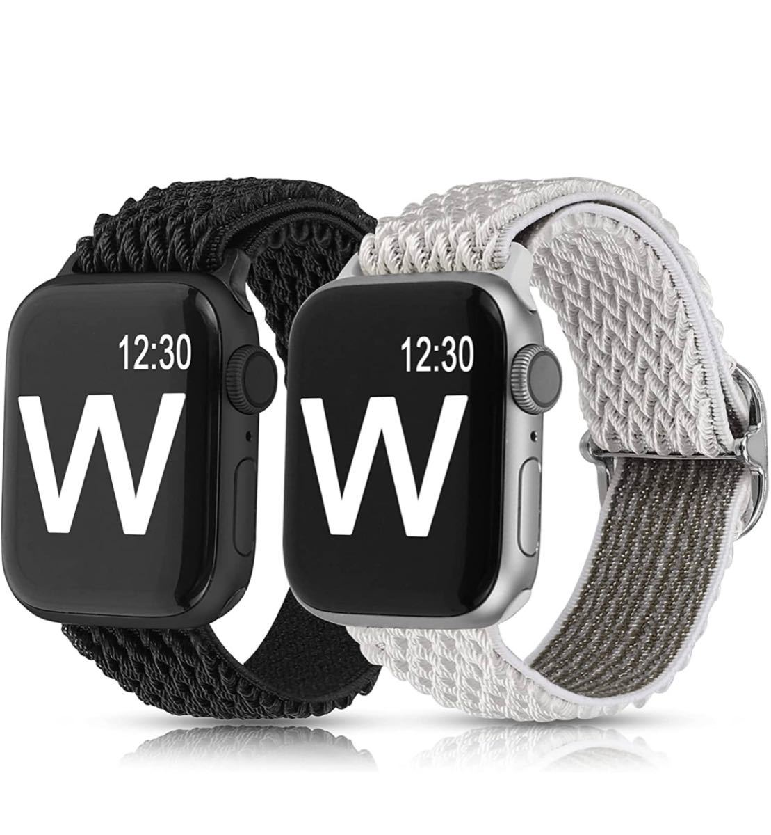 - 【2個付き】 Apple Watch アップルウォッチ バンド 38/40/41mm シリーズSE/8/7/6/5/4/3/2対応 ナイロン製弾性バンド (ブラック+ホワイト)