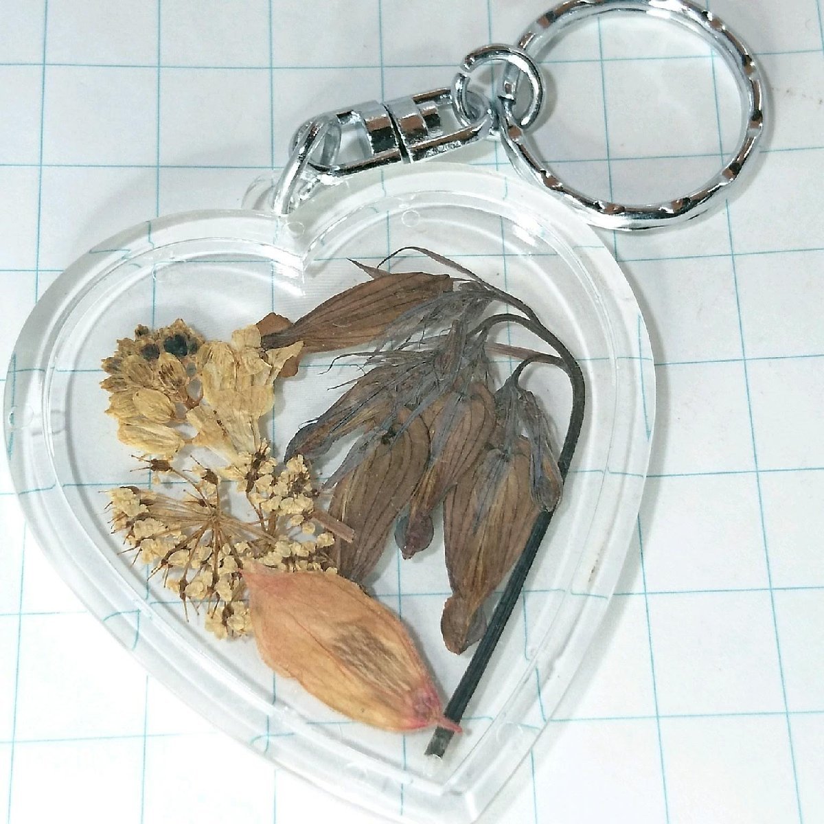 - 送料無料)ドライフラワー ハート 昭和レトロ 観光地 登山 山登り 旅行 記念 キーホルダ A11273