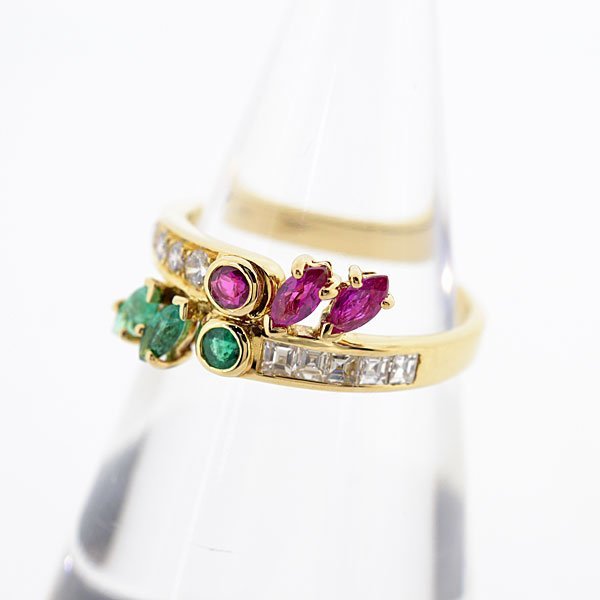 > S2387【BSJBJ】MOUAWAD モワード K18YG ダイヤモンド 0.27ct ルビー エメラルド 0.52ct リング 750 イエローゴールド 指輪 10号