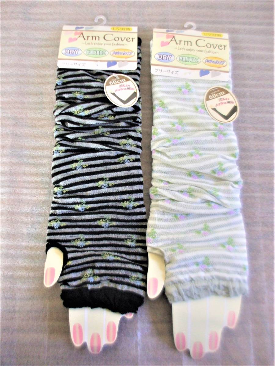 > 【ラスト】新品・2点セット◆長さ60cm メッシュロングアームカバー 花柄(黒&グレー) UV対策 日焼け対策 日よけカバー 腕カバー