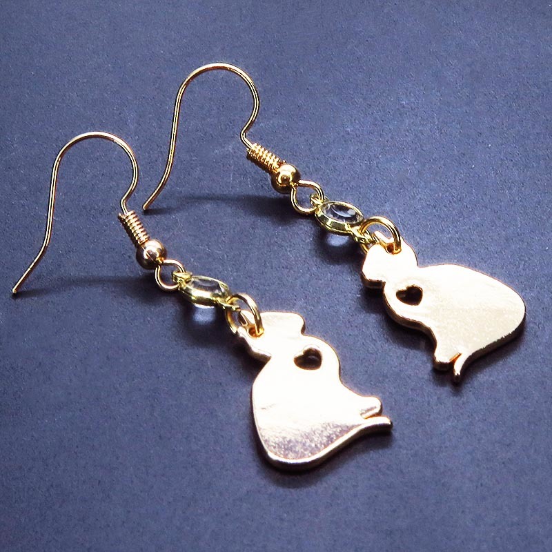 - ゴールドカラー 猫シルエットモチーフとラインストーンのピアス シンプル クリア サージカル変更可
