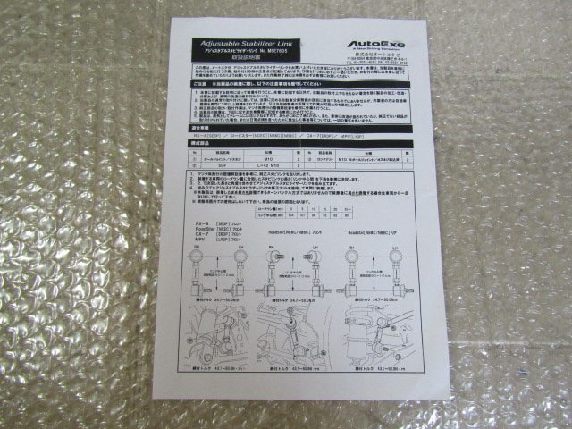 > RX-8 SE3P ロードスター NCEC NB6C NB8C / オートエグゼ アジャスタブルスタビライザーリンク No.MSE7605 取扱説明書