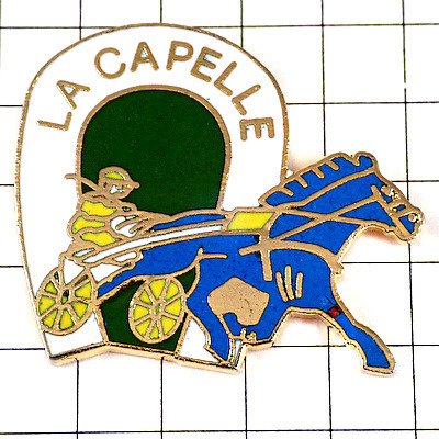 - ピンバッジ・青い馬の二輪馬車と白い蹄鉄◆フランス限定ピンズ◆レアなヴィンテージものピンバッチ