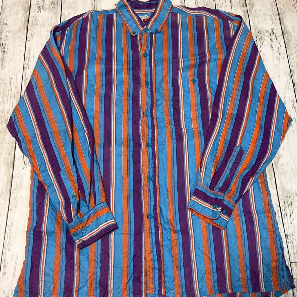 - Reputation マルチカラー ストライプ シルクシャツ ビンテージ ボタンダウン 長袖シャツ SILK100%