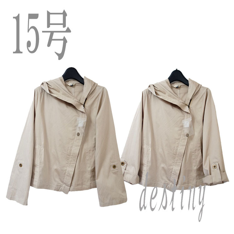 > ●新品/薄手/ジャケット/フード付き/15号/ベージュ系/レディース/春秋●f9031