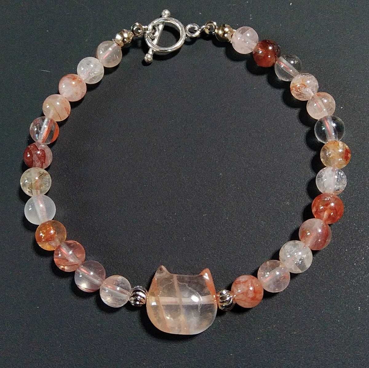 - マニカラン ライモナイトインクォーツ 猫パーツ 17cm ワイヤー マンテル デザインブレスレット 天然石 パワーストーン