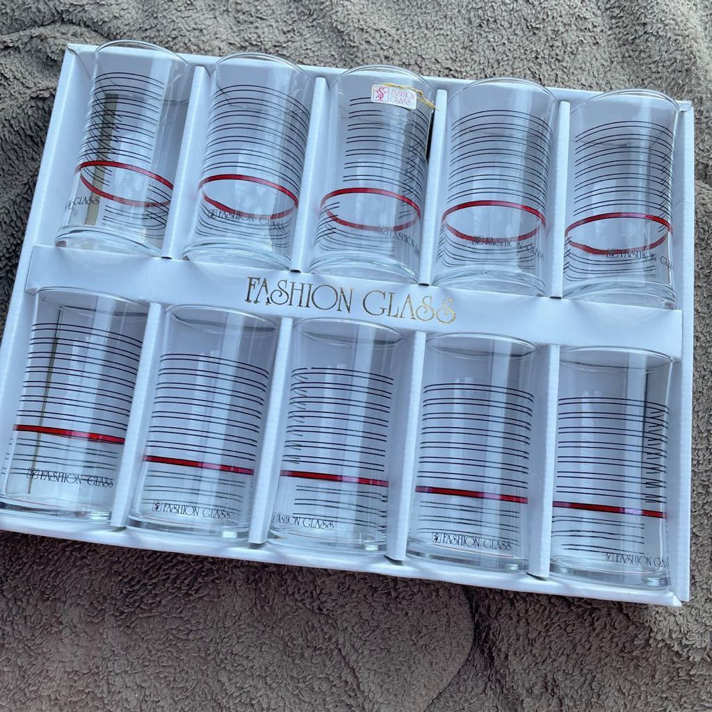 - 昭和レトロ 未使用 FASHION GLASS SY DESIGN ガラスコップ 10個