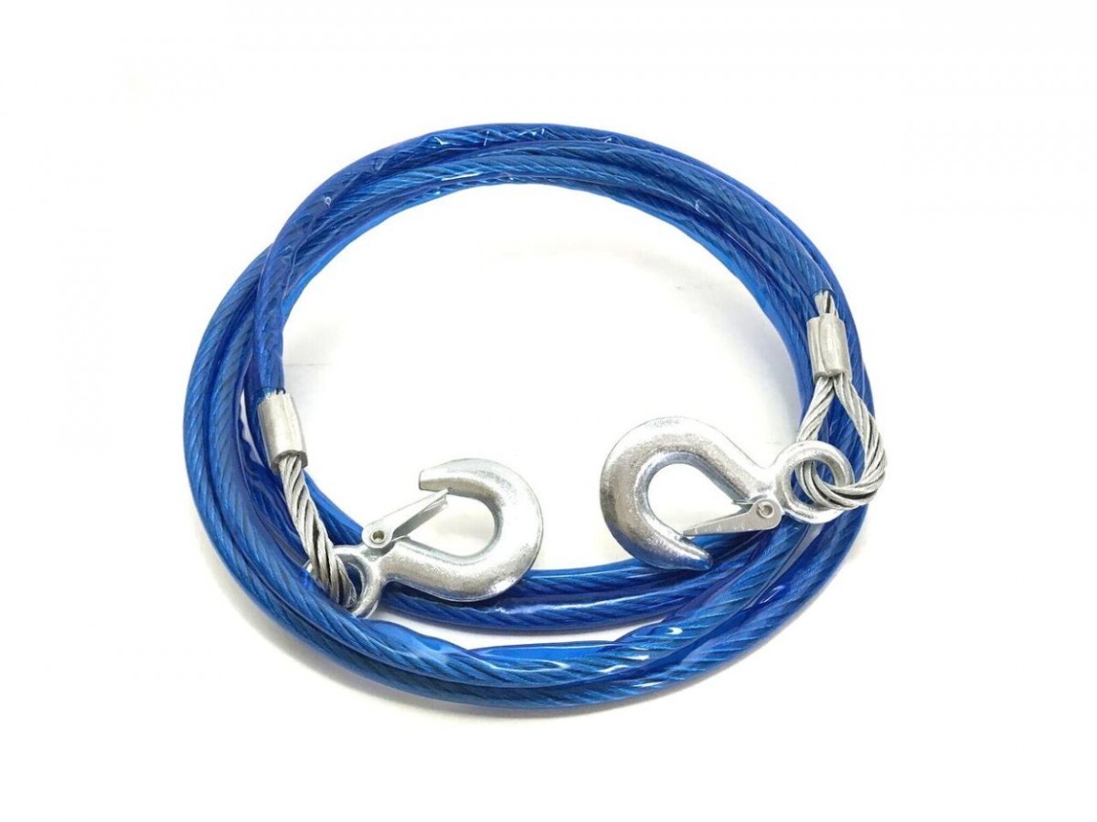 - 牽引ロープ 4m3トン 白旗 簡易収納袋付き けん引 フック式 ワイヤータイプ