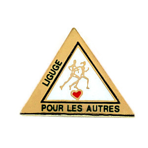 - ピンバッジ・ランナー男女赤いハート三角◆フランス限定ピンズ◆レアなヴィンテージものピンバッチ
