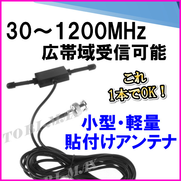 > 隠せる 30~1200MHzの広帯域受信♪小型・軽量・貼付けアンテナ(B) BNC型 新品 ケーブル・コネクター付/航空無線 エアーバンド