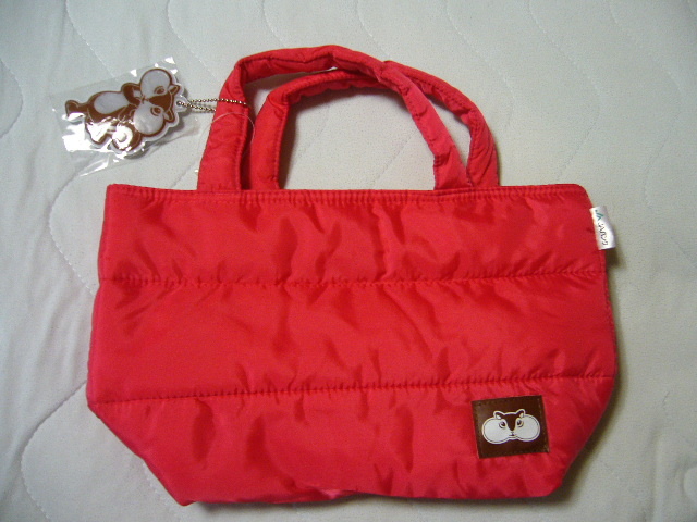- ちょリス ふわもこトート レッド 赤 トートバッグ 手提げバッグ かばん ちょリスリフレクター(反射板)付 サイズ330-200-120㎜ 未使用
