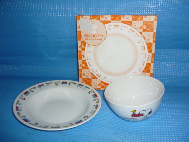 - E★非売品・未使用★2006年セブン限定 SNOOPYスヌーピー&ウッドストック ボウルとスープ皿セット