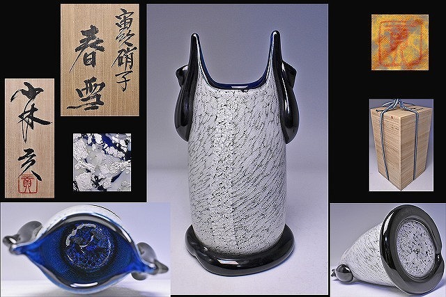 > 小林貢 ★ 宙吹硝子『 春雪 』★ 共箱 共布 ★ 独特の造形美と美しさの存在感溢れる逸品 ★ 花器 花入 オブジェ ガラス ★